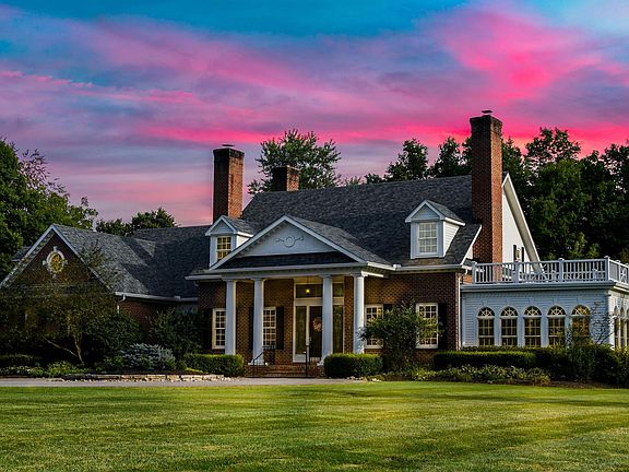 OPEN HOUSE 9/20 2-4PM Georgian Style Estate w/ a grandiose roundabout drive. Gain entry through the breathtaking pillared entrance. Marvel at the custom woodwork lining the chandelier dining room. Snuggle up in the sunroom even in the winter w/ its wood burning stove. Charming Kitchen w/ center island features bar seating, SS appliances, recessed lighting & large pantry. Stylish 1st floor master, spa style bath w/ clawfoot soaking tub. Sunlit GR boasts soaring ceilings, towering dbl mantle over the fireplace, elegant French doors overlooking the backyard w/ mature trees w/ custom paver patio, outdoor fireplace, pergola guarded relaxation area, & secluded fire-pit. Wood lined office w/ fireplace or retreat to the bonus room. guest suite includes full BA & kitchen w/ sep. entry