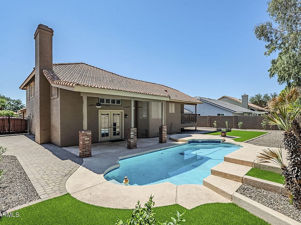 Welcome home to this one of a kind 4 bedroom, 3 bathroom property in the highly desirable Pacific Palms neighborhood. No HOA, large RV gate, and an oversized 3 car garage for all your toys. Inside you have soaring vaulted ceilings and lots natural light create a spacious, open feel. The home boasts tile flooring throughout with stunning red oak stairs, while the kitchen shines with granite countertops and stainless steel appliances. All three bathrooms have been beautifully updated and expansive living areas make this home perfect for large gatherings. Step outside to your private pool with clean pavers and fresh new turf, ideal for entertaining or simply enjoying Arizona's sunshine. Don't miss this one!