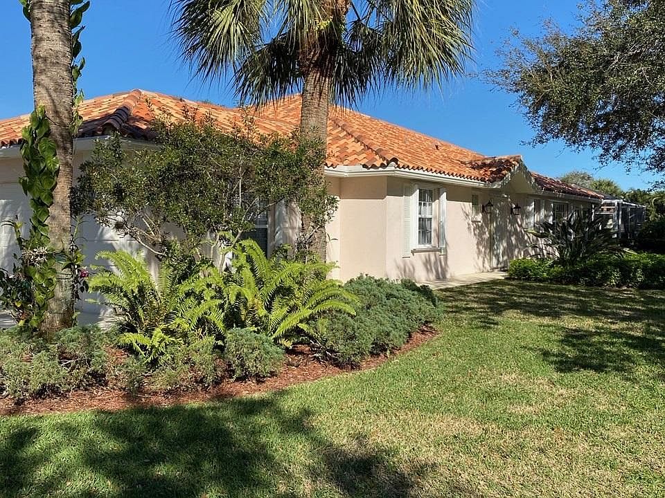 Location, location, location!! This rare end view ''Expanded Regent'' offers amazing views from every window! With a private cul de sac location it has a unique situation, very private and yet just a short walk across bridges to arrive at the Town Center. The extended living area gives many options for living or dining and the Great Room opens to the kitchen, perfect for entertaining. The kitchen has a very open feel and has an abundance of storage. Cathedral ceilings in the Great Room, built in entertainment center, extra cabinets in the garage.The whole house has tiled flooring, generous closet space, a magnificent screened patio with views of the lake, bridges and garden. Truly a unique property and well maintained! This home is available furnished or not! Shangri La!
