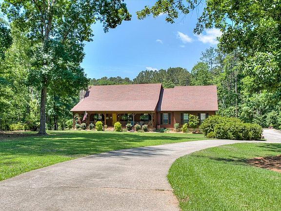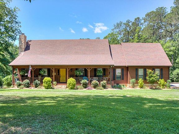 Custom built log-cabin style home nestled in a quiet cul-de-sac on 3.27 acres overlooking Lake Royal! Meticulous landscaping and rocking chair front porch immediately draws you in. Upon entering the home, prepare to be wow'ed by the gorgeous hardwood flooring throughout the main living areas, and heavy custom woodwork. To the left is the sunken in family room boasting a floor to ceiling stone fireplace and plenty of natural lighting. Enjoy cooking in the huge kitchen which is straight ahead and has upgraded stainless appliances, pantry, coffee bar and breakfast area with a view of the lake. The formal dining room has plenty of space for a large family gathering! Laundry will be a breeze with the oversized laundry room off the garage which leads to an office/flex space. Completing the downstairs is the primary suite with a custom tiled walk-in shower. Upstairs has 4 more bedrooms (2 with private bathrooms) and a large bonus room. There are so many options for guests or multi-generational family members! All bedrooms have walk-in closets and whole house has tons of storage. Relax outside on your oversized deck or head down to your portion of the lake to enjoy fishing, kayaking, wildlife and nature at it's finest! This home is a true oasis and a rare opportunity in the heart of Columbia County!