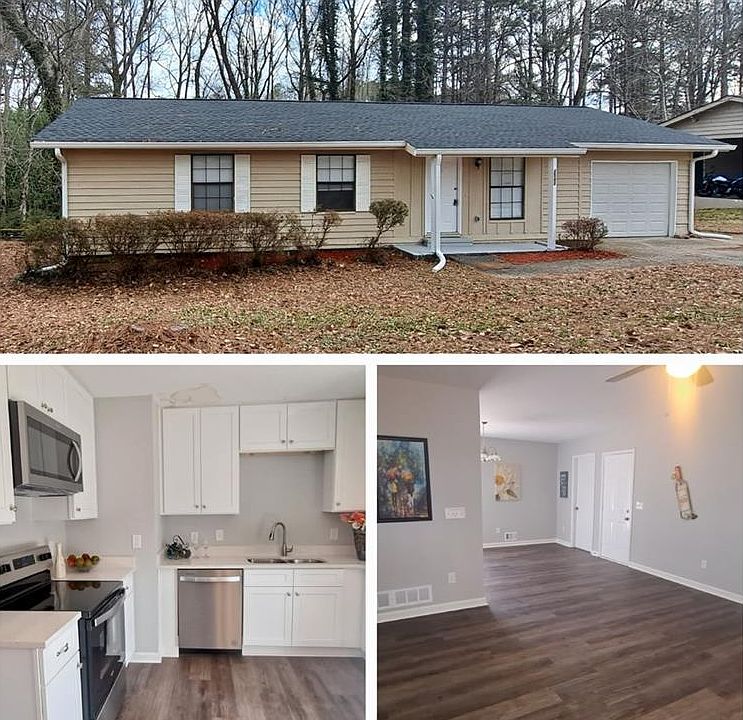 PRICE REDUCED! GREAT LOCATION! COMPLETELY RENOVATED. Cozy 1 story Home with 3 beds, 2 baths, 1 car garage, all rooms are brand new, New Roof, New walls, New ceilings, fresh interior paint, New appliances, New Cabinets, New Quart Countertops, New light fixtures, New tiles, New baths, New sink, New quartz counter top, New rangehood, New vanities, New Insulating, New Garage door opener, New gutters, New doors, New electrical box, Large deck overlooking private wooded backyard, new fence. All bedrooms on main. No HOA, Good Schools. EASY ACCESS TO EVERYWHERE, Near Cobb parkway, I-75, Minutes to KSU, downtown Kennesaw, Dinnings, Publix, shopping ETC... This home will go fast.