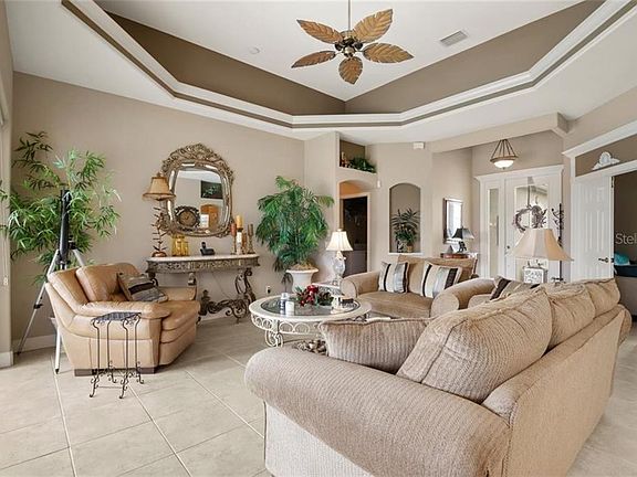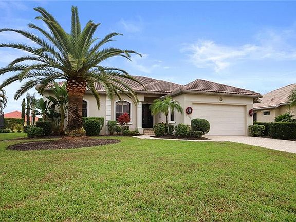 This lovely, meticulously maintained, 3 bedroom, 2 bath pool home offers one of greatest views of Charlotte Harbor National Golf Course at Bobcat Trail with a pond and the Club House as a backdrop. As you enter you will immediately notice the expansive wall of sliders to enjoy the pool view and beyond. The kitchen features granite countertops, an 8' island, tiled backsplash, and a very large walk-in pantry. The home is tiled throughout, with newer wood-look plank tiles in 2 of the bedrooms. The master bedroom enjoys a slider to the pool and granite counter tops in the master bath, with a walk-in shower. The great room includes the very popular 90-degree slider and a tray ceiling with crown molding. The home is getting a new tile roof which should be completed by the end of January, 2021. Bobcat is conveniently located near I-75, US 41, shopping, restaurants (also one on site at the club), medical care, and two baseball spring training facilities - the Rays and Braves. Membership to the golf club is optional. You do not need to belong to the club to enjoy the other amenities that Bobcat has to offer, such as a community heated pool, a community center, tennis and pickle ball court, and fitness center.