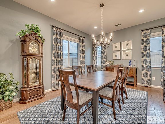 Charming Quincy Farmhouse in Reno's premier 55+ Regency at Caramella Ranch. This nearly new SMART home features almost 2000sf with 2 bedrooms plus office and 2 bathrooms, not to mention a solar system, whole house humidifier, air & water purifier, AND electric car charger. Start living your best life at this resort style community offering clubhouse, indoor & outdoor pools, fitness center, pickle ball, bocce ball, on-going events & activities, & more! Why wait? Don't miss this opportunity.