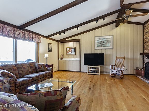Very special and hard-to-find 4 bedroom ranch with finished walkout lower level. Set on a magnificent 2.5 acre lot with mature trees, perennial gardens and lush yard with 3/4 of the lot left in its natural wooded splendor. Light and airy white kitchen with granite counters and large eating area opens to spacious family room with fireplace. Beautiful vaulted beamed ceilings and wide planked hardwood flooring. Sliders to decks from kitchen, family room and master. Breathtaking sunsets and nature views! Formal living and dining room are interchangeable spaces. Convenient first floor laundry. Fabulous walk out lower level has everything you want - rec room, office (currently used as a bedroom), full bathroom and spacious storage/work room. Includes faux fireplace, sliders to back yard and brand new neutral carpeting. Vacation lifestyle community with social activities for all. Swim, boat, fish, tennis and more. Award winning Barrington Schools. Don't miss this rarely available walkout ranch!