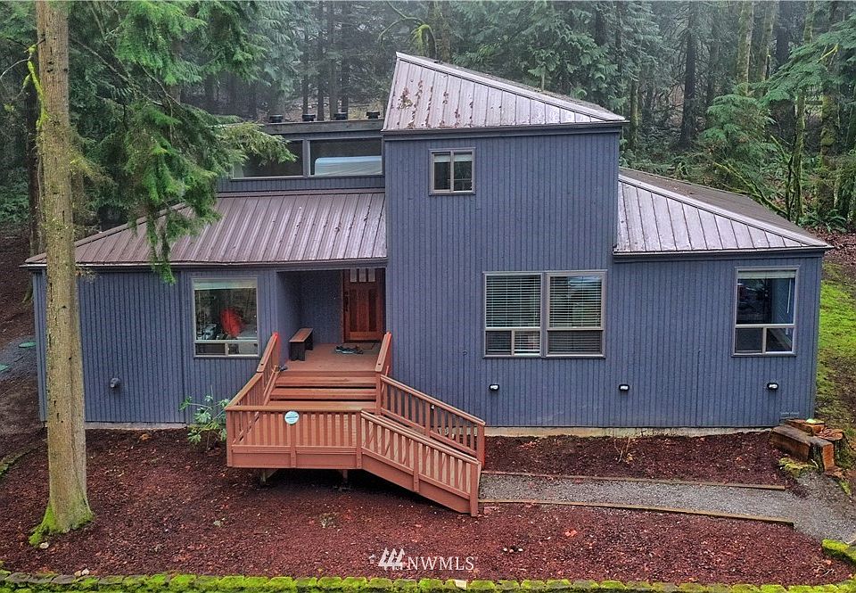 A home that's out of the bustle, but not too far away. Private setting on 1 acre with an open floor plan on Tiger Mtn. Beautiful hickory engineered flooring throughout main level (no carpet), updated windows, fireplace, wood beam and vaulted ceilings are just a few charming aspects of this lovely well maintained home. Corrugated metal roof, large windows and skylights provide tons of natural light. Kitchen is loaded for storage and has a walk-in pantry. Primary bedroom features a walk-in closet, en-suite and territorial views. Extensive back deck and outdoor entertaining area. Large detached 2 car garage w/ plenty of room for boat/RV storage. Amazing location within just minutes to DT Issaquah. Highly sought after ISD.