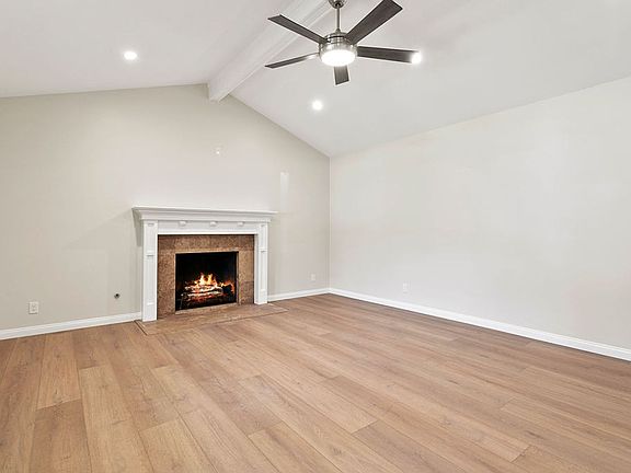 Available now! Welcome to this beautifully renovated single-level home, offering 4 spacious bedrooms and 2 modern bathrooms. From the moment you step onto the inviting front porch, you'll feel right at home. The living room features recessed lighting, a gas fireplace, and a vaulted ceiling with ceiling fan. The interior features contemporary vinyl plank flooring throughout, adding both style and durability. The heart of the home is the kitchen, boasting sleek white shaker cabinets, elegant solid surface countertops, new appliances, and ample storage spaceperfect for any culinary enthusiast. The primary suite features sliding glass door access to the backyard, large closets, and an ensuite with a walk-in tiled shower. Enjoy the convenience of an attached 2-car garage and a dedicated laundry room for all your needs. The large backyard is a true oasis, complete with a spacious patio area ideal for entertaining or relaxing outdoors. Whether you're hosting a summer BBQ or enjoying a quiet evening, this backyard offers endless possibilities. This home combines modern amenities with classic charm, making it the perfect place to create lasting memories. Don't miss out on this fantastic opportunity to own a beautifully renovated home with all the comforts and conveniences you desire! 1.
