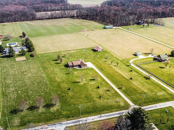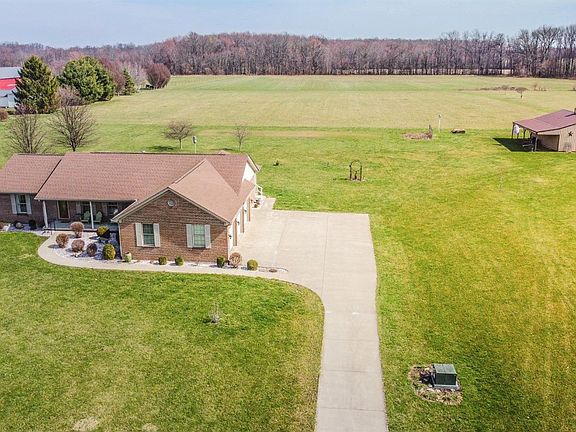 This convenient property has everything you need & want! Located less than 5 miles from I-74, in the country but close to everything! Quality built brick ranch, beautiful fireplace in open living RM-DR-Kitchen. Geo-thermal heat & A/C. 1st floor laundry rm, master suite w/ walkout to screen-in porch (20x6), all 3 bdrms w/ huge walk-in closets. Partially finished bsmt w/ family rm. Attached 3 car garage (36x25) plus 40x30 pole barn, concrete drive, all on 7+ acres! 1 YR. HOW!