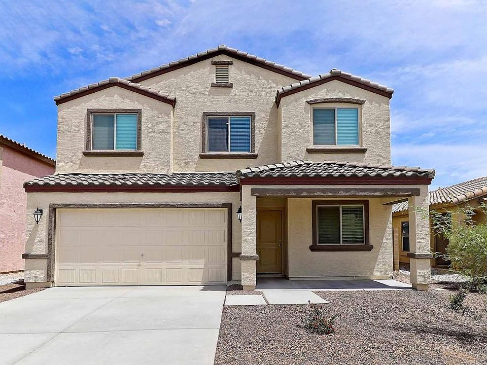 Located within the picturesque community of Parkeplace at Buckeye, the Cimarron plan features an open floor plan, 5 bedrooms and 3 baths. This beautiful, new two story home comes with tons of upgrades including energy efficient appliances, spacious countertops, custom wood cabinets, brushed nickel hardware and an attached two car garage. The Cimarron features a fully fenced backyard and front yard landscaping. Picture shown is of similar home.