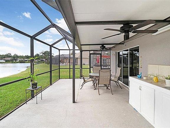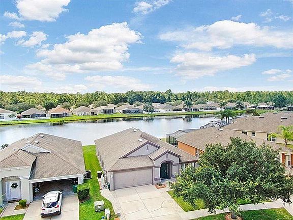 Lexington Oaks at Wesley Chapel. Enjoy stunning pond views from the covered patio. This move-in-ready home has a four bedrooms, two baths and 2,000 square feet of living area. The modern split floor-plan offers the ideal balance of privacy and openness. The combination living room and dining room has vaulted ceilings, archways, art niches and space to entertain. The large kitchen has maple wood cabinets, granite countertops, a separate pantry and a breakfast nook. The kitchen overlooks the family room and screened patio. The tinted sliding doors reveal pond views, the expanded patio, and the backyard. The master bedroom has walk-in closets, vaulted ceilings and large windows. The master bath has dual vanities, walk-in shower, and a relaxing garden tub. The home has ceramic tile flooring throughout. The large utility room includes plenty of space and storage that leads to a large two car garage. Built into the property is a smart home security system. Lexington Oaks features an 18 hole golf course, club house, playground, a day care center, basketball courts, soccer fields, fitness center, and a community pool. The neighborhood is located near I-75, minutes from the Grove, Premium Outlets, Shops at Wiregrass, Advent Health, PHSC, Center Ice and much more.
