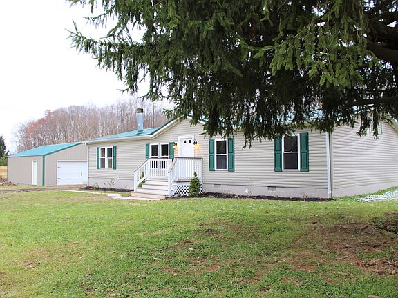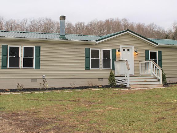 Peaceful country views and an open concept floor plan are only a few of the highlights of this beautifully updated 3 bed/2 bath manufactured home. Located on 8.13 acres of breathtaking land that includes mature trees and meadows, this home also includes a large detached garage with concrete floors and electric. Inside the home you'll find a completely remodeled home with all new flooring, lighting, paint, and kitchen cabinets and counters. This truly is a country oasis, whether enjoying the soaking tub in the master suite, relaxing by the wood burning fireplace in the spacious living room, sitting on the back deck watching the sunset, or taking in the views from the wall to wall windows in the kitchen and dining room overlooking the scenic property. This could be the home for you!