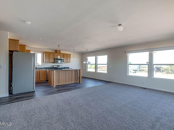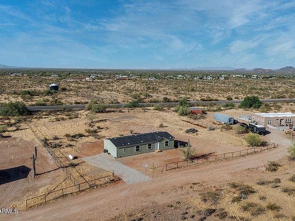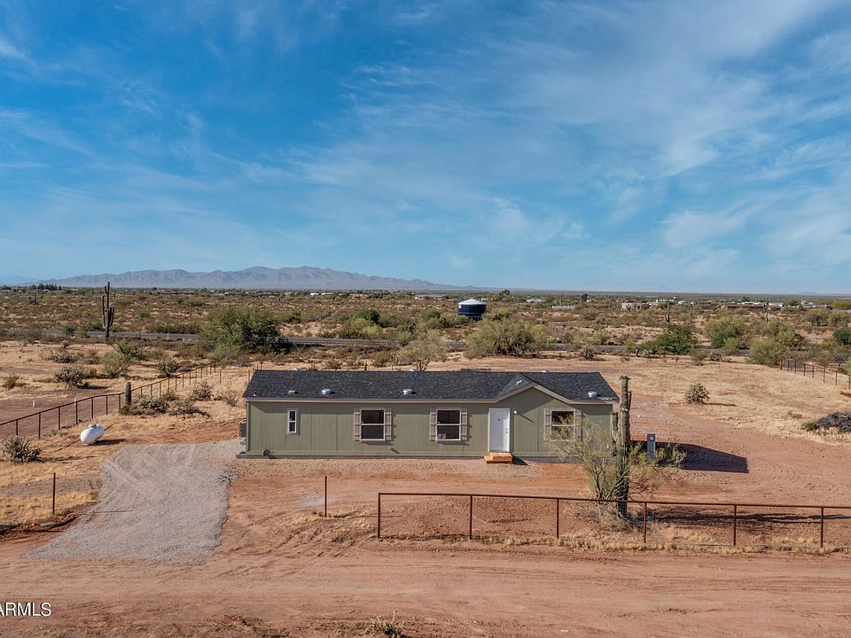 Brand New 4 bedroom 2 bath home on 1 acre on gorgeous fenced property. 4 Horse stalls have already been built with well pipe fencing so bring the horses. This beautiful home has so many great upgrades, some of which include granite counter tops throughout home, upgraded beech alder cabinets throughout, pendant lights in kitchen, and can lighting, stainless steal appliance package, and so many more great features in this home. This is a must see! Close to schools, shopping, right down the road from Lake Pleasant and minutes to Wickenburg the Team Roping Capital of the World.