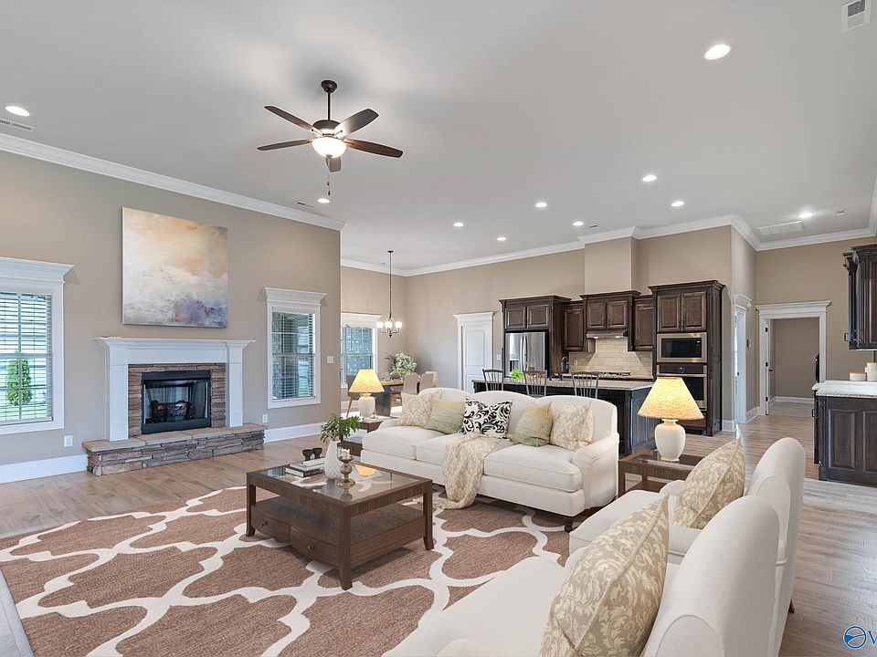 Discover this beautifully maintained one-level home in a prime location within a sought after neighborhood, perfect for family living and entertaining. With an open layout, custom cabinets, coffered ceilings, and a spacious bonus room, this home offers modern elegance throughout with high end finishes. The gourmet kitchen features an extra large island and walk-in pantry. The private, large, primary suite boasts a glamorous bathroom, while a cozy fireplace in the living room, and fenced flat yard complete the package. Enjoy a neighborhood pool & clubhouse, and easy access to Redstone Arsenal, Decatur, and Madison, and the airport – an ideal blend of comfort and convenience!