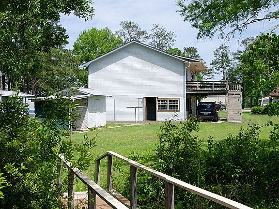 A lake home with 4 BR/2 BA sitting on 0.35 ac. Great rental property each floor could be a separate unit. Each has it's own central HVAC unit. two BR upstairs and down. The upstairs lake facing rooms have big glass sliding doors that focus on maximizing the view & a deck across the entire front of the home. The underneath the deck is the 2 car carport. The parcel consist of two lots (34 & 35) which offers 189.9 feet of water frontage, two piers (one with a gazebo & is wire for lights) and a concrete boat launch.