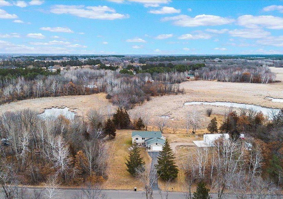This charming 4-bedroom, 2-bathroom home nestled on 5 acres offers the perfect blend of peace and convenience. Situated in a serene location with no back yard neighbors, allowing for peaceful enjoyment of the surrounding natural beauty. The home features four bedrooms, along with a large spacious family room. With two full bathrooms, including access to the primary bedroom. You will love the updates throughout including the stainless steel appliances, beautiful flooring, and updated bathrooms. The property boasts a spacious pole shed, ideal for storing hobbies and toys, while providing ample space for all your outdoor equipment and projects. Enjoy watching the picturesque backdrop while the deer graze in the distance or listening to the songs of birds, nature enthusiasts will delight in the abundance of wildlife. Overall, this property offers a rare opportunity to own a peaceful retreat with ample space both indoors and out, making it the perfect place to call home in Big Lake, MN.