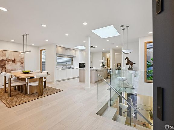 Sleek, renovated home just 4 blocks from West Portal Avenue, offering 2,661 sq. ft. across two levels. This turnkey residence features 4 bedrooms and 4 bathrooms, thoughtfully redesigned with elegant finishes. The main level boasts a spacious living room with lime wash walls and a custom gas fireplace crafted from Collemandina marble, creating a warm, inviting atmosphere. Both kitchens include a Sub-Zero refrigerator, Miele and Bosch appliances, Cristallo natural quartzite counters, and stylish cabinetry, perfect for entertaining or everyday living. Bathrooms showcase integrated sinks and refined finishes, while bedrooms feature updated details. New windows, skylights and light fixtures expand the sense of light. The main level offers 2 bedrooms and 2 bathrooms. The lower level includes 2 bedrooms, 2 bathrooms, a mini-kitchen, wine fridge, and an entertainment room with folding glass doors opening to a landscaped garden with sweeping Pacific Ocean views. Recent upgrades include new foundation, roof, plumbing, electrical and forced-air heating systems. Ideally located near West Portal, this home offers easy access to shops, dining, and transit. A rare opportunity to own a modernized home in one of San Francisco's most desirable neighborhoods.