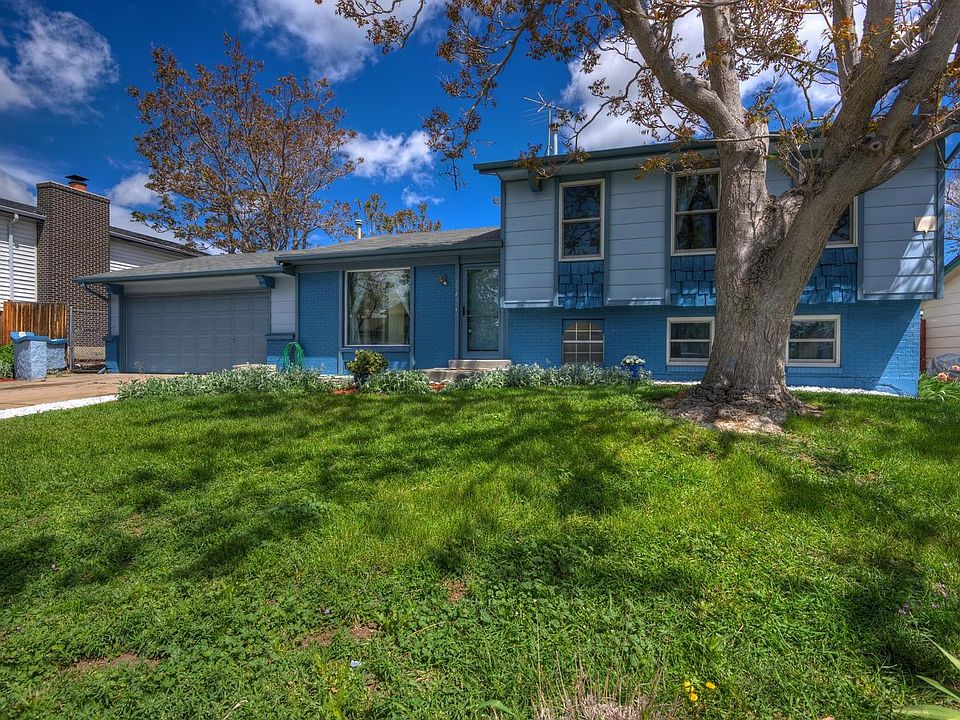Colorful and uniquely artistic home with archways, wood laminate floors, raised dining room. Spanish décor kitchen with gourmet stainless steel hood, stainless steel stove and dishwasher. Four bedrooms (one non-conforming), two baths. New Renewal by Anderson front door and sliding glass door. Some windows have been replaced with Renewal by Anderson with transferrable warranty on both doors and Anderson windows.Family room with a one-of-a kind bar that is great for entertaining. Back yard with raised planters and greenhouse. Drywalled and heated two car garage plus convenient storage shed. Sold with all appliances including refrigerator and freezer in the garage. Great location with easy access to I25 and to Colorado Blvd. and the light rail N-line station that is coming soon. Available for quick possession!!