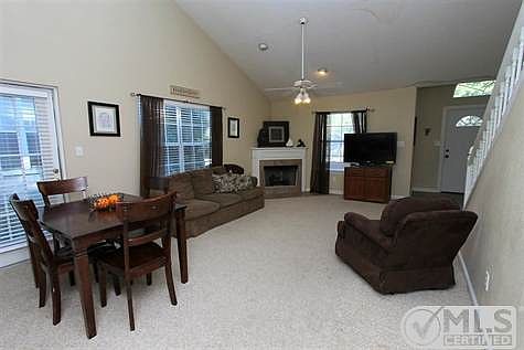 Three bedroom townhouse in Golden Park off Pullen Rd with a privacy fenced in backyard with deck and patio. Living room has an eat-in dining space, fireplace, high ceilings and is open to the kitchen. Kitchen includes a bar, walk-in pantry and utility space. The two bedrooms upstairs share a jack and jill bathroom. Community pool included in HOA.