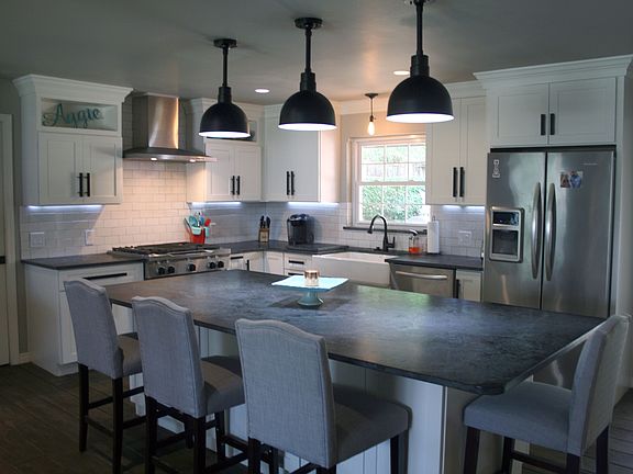 Downtown loft feel in the middle of Belle Isle! Open living to gathering spot kitchen with cozy fireplace and bar. Totally renovated with cook's kitchen featuring black soapstone counters, white subway tile backsplash, modern pub lighting, stainless steel Kitchen-aid appliances and oversized fabulous island. Distressed thick plank gray wood floors run throughout the house carrying the loft feel with them. Both bathrooms renovated with granite and subway tile. Additional features: newer windows, inside laundry with water line for steam dryer, triple lot with tiered backyard for sports, spacious covered back patio with pergola and deck. Walking distance to the fabulous new Belle Isle Library currently under redesign, Trader Joe's, Whole Foods, Classen Curve, Nichols Hills Plaza and the parks at Nichols Hills and Belle Isle. Looking for an easy living /move in ready house? This is it.