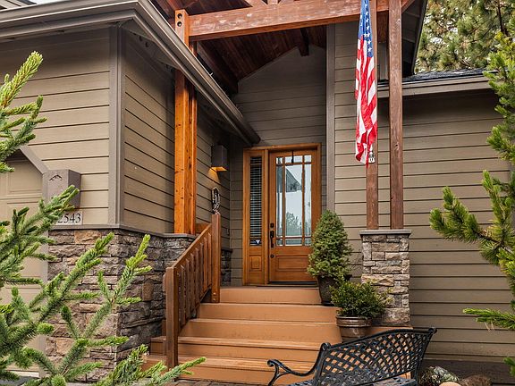 Quality, pride of ownership, and a thoughtful single level floor plan come together and create an easy living town home on Bend's west side! Thoughtfully positioned on a quiet cul de sac & spacious corner lot, natural elevation lets you gaze through the treetops & enjoy privacy & the high desert landscape. The floorplan lives spacious & open and is filled with natural lighting from the many oversized picture windows. Centered on a chef's kitchen with granite counters & beautiful cabinetry you will delight having a private rear deck with remote activated sunshade, primary suite separation, a built out workspace in the garage, and tall ceilings. Special upgrades include new upgraded roof, thermostatically controlled attic fan, lit crawl space with standing room, and two built-in desk areas. Located in a respected community & steps away from a beautiful park, this home is beautifully maintained for the discerning buyer with quick access to golf, hiking trails and dining.