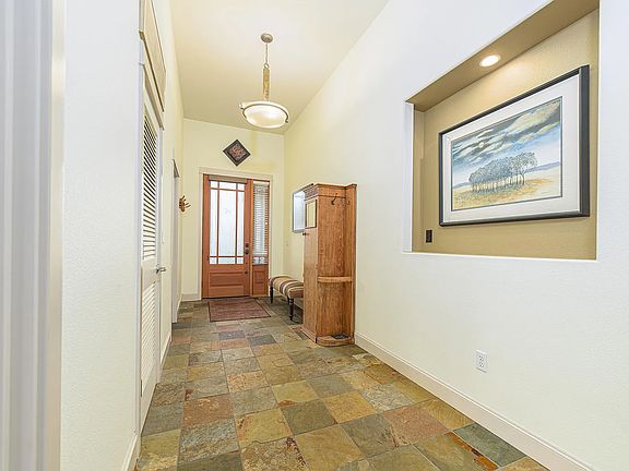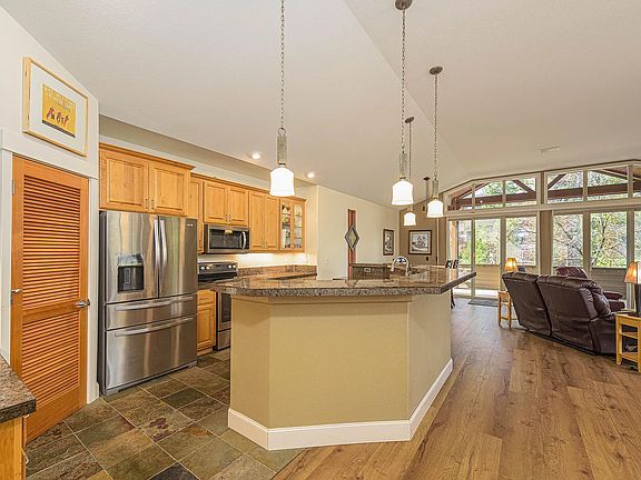 Breakfast Bar, Granite Counters, Linen Closet, Open Floorplan, Pantry, Primary Downstairs, Tile Counters, Tile Shower, Vaulted Ceiling(s), Walk-In Closet(s)