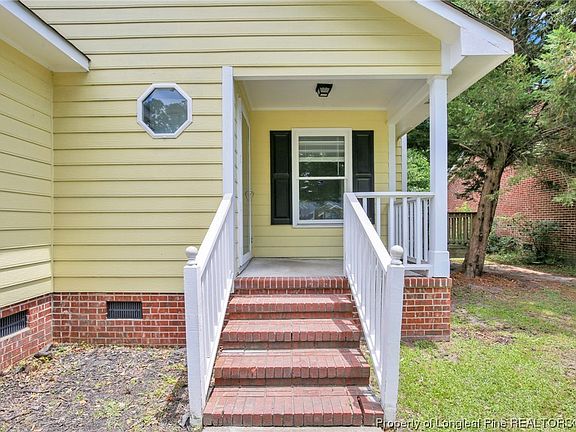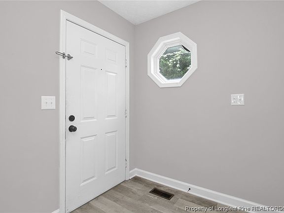 This home has been freshly painted and have updated laminate flooring throughout the entire home. Roof was installed in 2019 and HVAC was installed in 2021. The Kitchen and bathrooms features real butcher block counter tops along with Vessel sinks in both bathrooms. Bedrooms are a nice size with a walk in closet in master. This home sits in a well-maintained and quiet neighborhood, with a strip mall of amenities at the end of the street such as Hungry Howies, Hibachi Express and within minutes to Fort Liberty. The Refrigerator, Washer & Dryer will remain in the home as gifts to the Buyer.