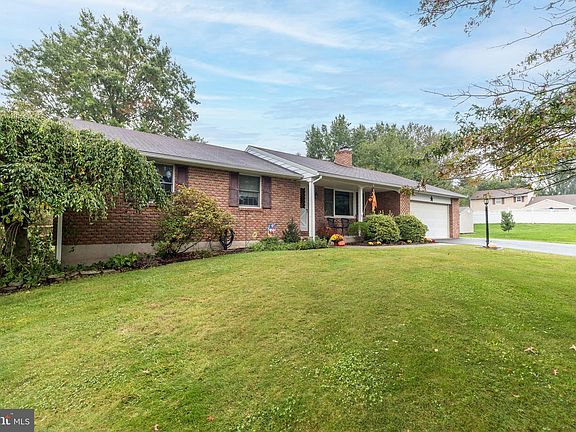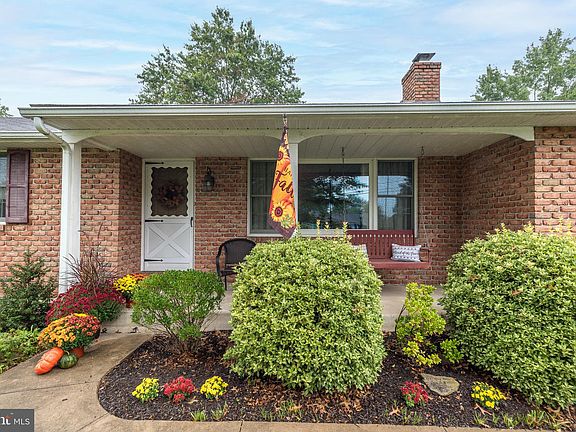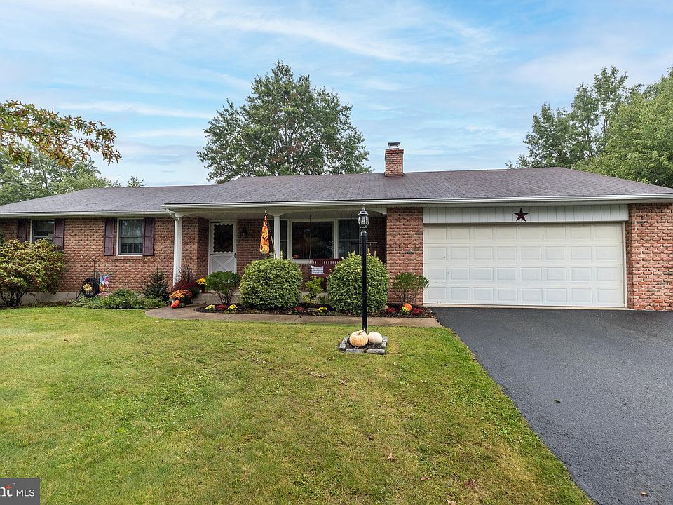 This absolutely adorable ranch home awaits its new lucky owner! Built by Paul Moyer, this lovely solid brick ranch welcomes you with a covered front porch where you can sit, relax and enjoy the quiet neighborhood. Step inside to a warm living room with a central brick fireplace, large picture window and a convenient closet. Enter through the bright dining room to the Kitchen which has all solid wood cabinetry with lots of storage and plenty of counter space for cooking those delicious meals. Down the hall you will find the master bedroom with its own en-suite bathroom, 2 other good sized bedrooms and a hall bath. The lower level is the perfect area for entertaining with a built-in wet bar and a convenient half bath close by and cozy up in front of your stone fireplace with a wood burning stove that will heat up the whole home on those cold winter evenings. The separate laundry room with additional storage space completes this lower level. To the rear of the home you will find another covered porch area where you can relax and enjoy your beautiful private back yard. There is a fenced garden with beautiful shrubs, flowers and a pond and beyond that you will find another fenced in vegetable garden, and a large storage shed. Home has a brand new air conditioning unit and most interior doors have been replaced with new solid core doors. Carpets have all been recently cleaned. Conveniently located to many great shopping areas and major commuting routes, this home is a must see and wont last long! Schedule your showing today!