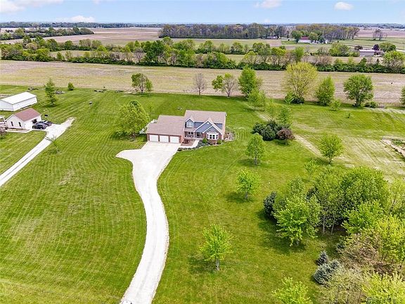 Over 4500 square feet of living space in this delightful two story, 4 bedroom 3 1/2 bath, 3 car garage home nestled on 15.8 acres. The currant homeowner is downsizing after enjoying years of entertaining in this well loved home. Geothermal Heat with a 5 year transferable warranty. Generac generator stays with the home.400 Amp Electric service. Omni Security System. Enter into this 9x10 foyer exposing the open staircase allowing for the light and airy feeling of tranquility. The vaulted ceilings in the window lined great room, flush hearth fireplace, opens to the breakfast area and giant chief's Corrine kitchen supporting granite center island, Dutch oven, smoked glass French doors peaking to the sizable pantry and all the amenities needed for entertaining. Including a formal dining room lined with chair rail molding, trey ceilings and glass French doors. The enormous owners suit is also located on the main floor and the 11x7 master bath has a separate glass shower and custom built corner tub. There is also a private walk-in closet. Second floor balcony overlooks the main floor and leads to the open loft/office area, two considerable bedrooms and a full bathroom. The recreation room has a triple egress window. Bedroom number four has a double depth closet, egress window number 2 and the third full bath just next to it. One of the extra jumbo 45x16 storage areas has a polyurethane floor. Two sump pumps and back up. Three plus car garage, ten foot ceilings and service entrance. Sellers will entertain a flooring allowance for the basement rec room. 10.4 acres are currently farmed and produce a yearly income. 2022 Crop Rights reserved for the seller.
