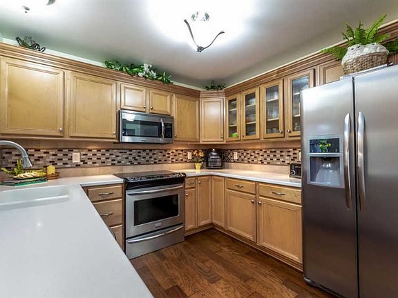 Beautifully maintained ranch home with maple cabinets, fantastic stainless steel appliances and backsplash! 1300 sq ft of finished basement with wet bar and bathroom! Walk out to your wooded and private back yard. Pellet Steve and pellets stay!