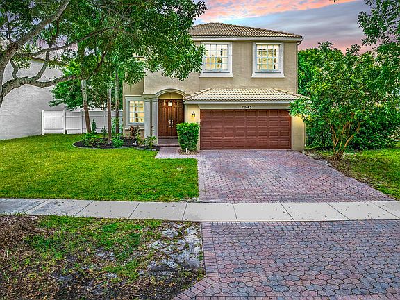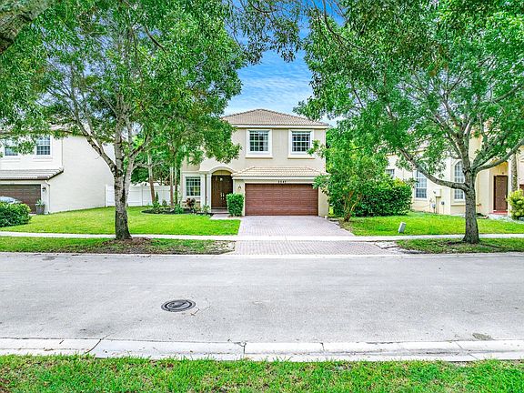 This stunning 5-bedroom, 2.5-bath home in Olympia is a rare gem, set on an oversized pie-shaped lot with serene greenspace right across the driveway. Inside, the open floor plan is both modern and inviting, with sleek wood-look tile flooring creating a warm, stylish atmosphere. The spacious kitchen and living areas flow effortlessly, perfect for family gatherings or entertaining friends. Upstairs, the private balcony offers tranquil views of the expansive backyard, fully enclosed with PVC fencing and solar lighting, providing an idyllic space for play, relaxation, or outdoor evenings under the stars. Nestled in the heart of Wellington, Olympia offers resort-style amenities, including a sparkling pool, kid's splash pad, fitness center, and year-round community events. With playgrounds, sports courts, and top-rated schools nearby, this home provides the ultimate blend of comfort, space, and an active, family-friendly lifestyle!