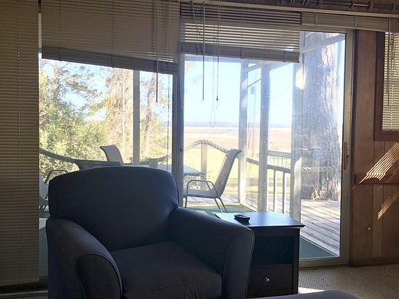 “Get Ready for Summer” This coastal retreat you have stunning views from your screen porch and living room. Comes furnished with 3 bedrooms, 2 baths, kitchen flowing easily to dining and living room. Master features gas fireplace and private bath, detached storage with pavilion for cookouts fish screened fish cleaning station and 2 car carport. Just steps from the Bellville public dock and boat ramp on the Sapelo River. Not located in a flood zone!!