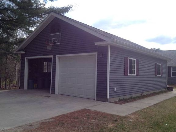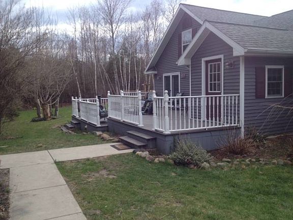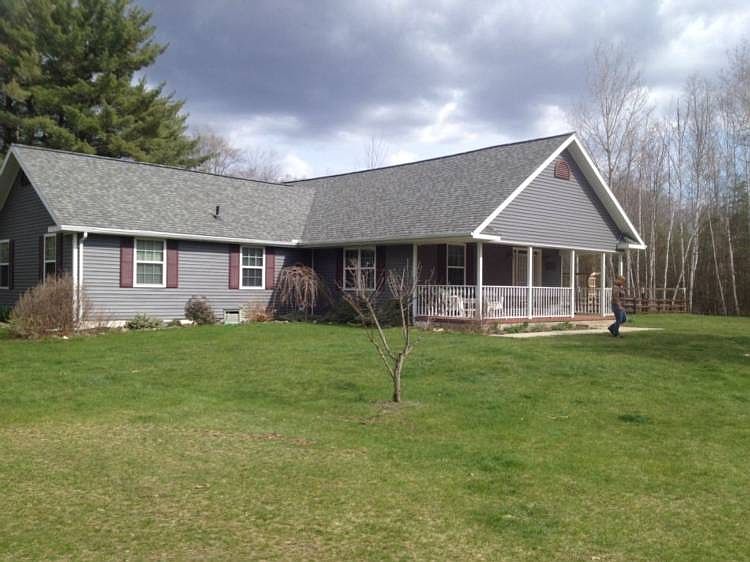 Can't find a house to please both of you? You've found it. A large spacious kitchen with eating bar and fabulous views of the deck and yard set on 5.11 acres that backs to state land. Large two car garage for the cars, large barn for the stuff. Home and yard are both in very nice shape. Split floor plan with a master suite at one end and the other two bedrooms at the other. Wood burner fireplace practically heats the house for winter. Vaulted ceilings in living room, kitchen. A very peaceful setting! Bullock Creek Schools. City water was just hooked up.