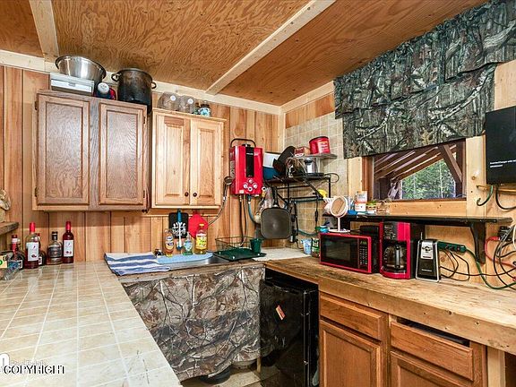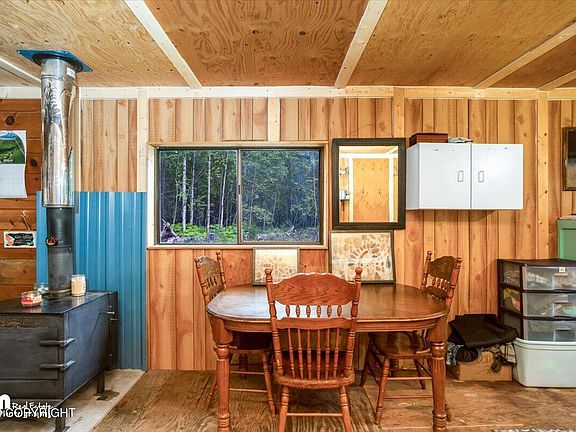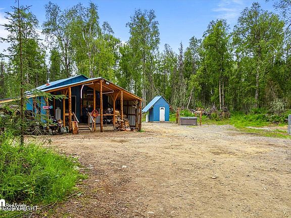 Perfect Getaway on the road system with quick access right across the street to state land. Cabin is on 4.99 acres has Moose Creek 250 yards behind the house , world class fishing, hunting, trapping and snowmobiling. Built in 2011, this 16'x24' well insulated dry cabin has a 8x8 shower house/ outhouse with propane water heater & propane heater and transfer pumps/water storage tank . There is about an 1/2 acre cleared out for a fire circle and all the raspberry, watermelon berry and blueberry are still throughout the property, The elementary school is just 5 miles away and the school bus picks up/drops off the kid(s) at the end of your driveway for elementary school and middle/high school , There is a local post office, two gas stations with laundry facilities , a local library and the Wal-Mikes just minutes away. Propane water heater for the kitchen Water barrels and a transfer pump under the sink and there is a potable water station in trapper creek to haul your water. This Cabin has a 34x12 porch With a built-in woodshed that can hold five cords of wood or more! deep freezer works great included in the sale also a 50" tv mounted to the bar ... Comes with a 2018 hot tub jacuzzi with over hang in the construction stage. A full 24v solar system included with 2 generators, This is an excellent base camp for all your outdoor adventures. Peaceful, and private on a nicely treed lot and off of a gravel road with a gravel driveway, the road is borough maintained year round, and no swamp on this 5acre parcel sale includes wood stove , full size fridge, propane tanks, propane heaters & 30 foot dog run. See bill of sale in documents for list of items staying with home.