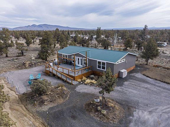 This modern ranch style home boasts an open floor plan with vaulted ceilings & stunning sunset views from huge west-facing deck. The kitchen features an abundance of counter space, custom island, stainless steel propane stove, dishwasher, and refrigerator/freezer. Primary bedroom includes a walk-in closet and a large bathroom with a unique soaker tub and step-in shower. The other end of the house has a full bathroom and two more bedrooms, each with its own walk-in closet. The utility room has a washer/dryer, utility sink, propane furnace, and tankless water heater. All appliances included! The 1000 sq ft. former home, currently being used storage, located less than 100 feet away from the main home, is heated and has 2 bathrooms; perfect for tack storage, office, or creative space. The property also includes 3 outbuildings, a chicken coop w/fully enclosed pen. Seller contribution available toward buyer's closing costs and/or rate buy down with acceptable offer. Home Warranty Include