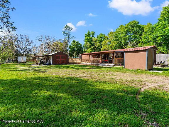 Want to relax by the fire pit, or garden this yard offers plenty of room and is fully fenced. The home features open living and kitchen area. Kitchen has plenty of cabinet and counter space and eat in area! Bathroom has claw foot soaking tub and chandelier. Two nicely sized bedrooms located on opposite ends of home. Bring the toys!! Spacious (24x15) garage/workshop with power and lighting, shed and lean to also included. Got an RV? There is plenty of room to store it and this home features RV hookup and wide fence gates to ensure easy parking. Located just minutes to the Withlacoochee Forest & bike trail, Croom Wildlife Management area and convenient to I-75 and downtown Brooksville!