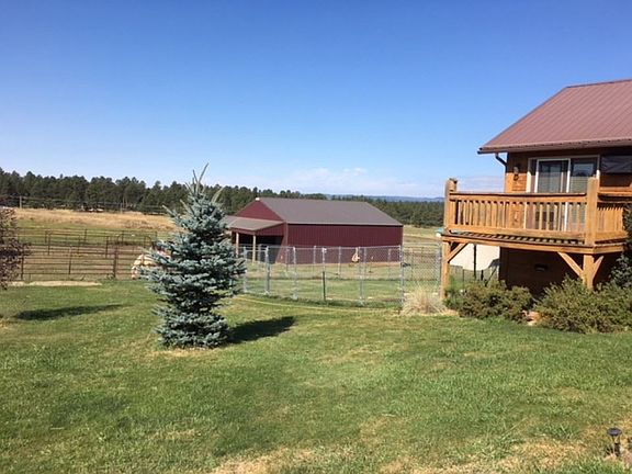 MOTIVATED SELLERS!!! Reduced price to $398,000. Horse Property in the Heart of the Black Hills. Large Log Home on 5 acres, fenced for horses and NEW 36X36 barn with 8'-deep overhang. The Barn is a MPF (Michels Post Frame) $26,500 added in June of 2018. Also 40 Priefert horse panels & 4 Walk-thru gates, $6,000 in June of 2018. In Sept. 2018 frost-free Waterline to barm $3,000. Wonderful views of the Hills from the large covered deck. Endless possibilities with 2 complete yet separate living quarters - one up one down - each with 2 Bedrooms, full bath, laundry and hall linen closets, kitchens and living rooms. Main level has an open floor plan, vaulted ceilings and views from every window. Enjoy the Hills or watch the horses. Only a couple miles south of Custer on a paved road and just minutes from US Forest Service for your riding (horse or ATV) pleasure. This home as many special features and a great deal of storage. Covered deck is also setup and wired for a hot tub.