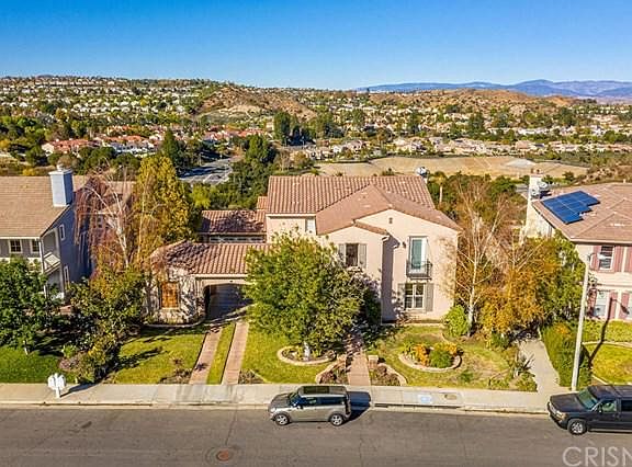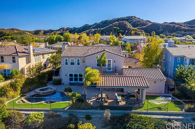 An absolutely fabulous Southern Oaks pool home with spectacular views of Stevenson Ranch! Amazing kitchen remodel with oversized Quartz island, white cabinets & stainless appliances. The kitchen/family room space in this model is as large as you will find anywhere & is the central point of the home with stunning stack-stone fireplace. The master has also been completely redone with custom coffee bar/beverage center, huge walk-in closet with organizers & a master bath that will have your jaw drop! Reimagined, opened up & the space smartly reconfigured with all high end finishes, custom & hand made. Crown, base & shutters throughout, even the staircase has been redone. Wood & stone floors up & down. Top of the world views from the master deck & the private yard with pool/spa, gazebo with outdoor fireplace & covered cook station - WOW! Great floor plan with full bed/bath & office down. 4 beds & 3 baths up. 3-car split garage with cabinets, epoxy floors & tesla charger. The Southern Oaks Society HOA offers lots of dedicated open space, tot lots & community club house & pool - all with no Mello roos taxes & access to the highest rated schools in SCV!