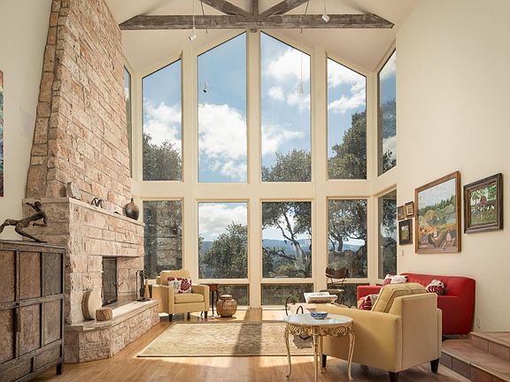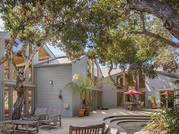 JUST MINUTES FROM CARMEL with the warmth of Carmel Valley sunshine you'll find a very private 12+ acre estate in most sought after Mid-Valley. Surrounded by graceful oaks with breathtaking peaceful views of hills and valleys, a dramatically designed contemporary home with architectural angles is a hidden oasis. Offering a serene lifestyle for the homeowner, this work of art has light pouring through clerestory windows, a 4,427sf 3 bed, 3.5 bath main house with office, studio and a magical pool and spa. An impressive 616sf 2 Bed, plus loft guesthouse complete with kitchen add to this estate with raised garden beds and solar power.
