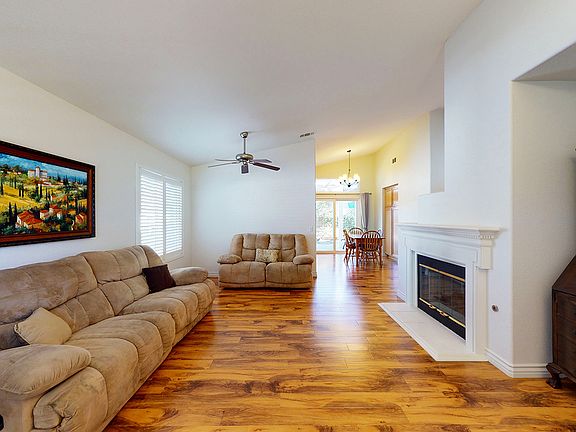 Single-story home in sought after neighborhood of Stevenson Ranch - 3 Bedrooms, 2 Full Baths (1 Master en-suite) with Attached 2 Car Garage & parking space! 24x7 Security Patrol, Award Winning Schools, walking distance to Pico Canyon Park, Stevenson Ranch Plaza, and minutes to Valencia Marketplace Shopping Center and Towsley Canyon Park, No Mello-Roos, Low HOA $30 in Spyglass Community. This lovely single-story home has vaulted ceilings in both the Living Room and Master Bedroom, Fireplace, Triple-pane Windows, Shutters, and Wood Laminate Flooring all throughout! Master Bedroom with vaulted ceilings and Walk-In Closet, Master bath with Dual-Sinks and split bathroom. The spacious Kitchen includes Granite Composite Single-Basin Sink, Capital Chef's Range / Oven. Dining area with a view to the Backyard, Lattice Pergola, Citrus and multiple Fruit-Trees - Meyer Lemon, Pomegranate, Plum & White Peach, Tool Shed, Central A/C & Heat & Laundry in Garage.