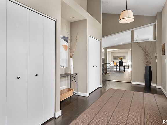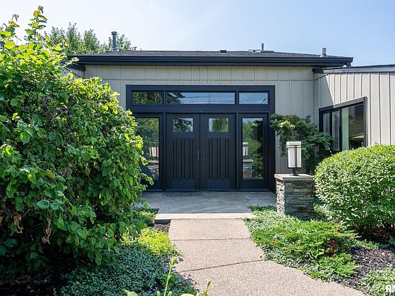 Rare opportunity to own a home originally conceived by an understudy of Frank Lloyd Wright. Home fits gracefully into a 1.75 acre lot with seasonal views of the Mississippi River. Home's design presents two wings flanking the main living spaces. Kitchen was a full remodel in '12 with plentiful counterspace, 2 large window walls looking out to the greenspace surrounding the home. The luxurious kitchen has plentiful cabinets, a walk in panty, Jenn air gas cooktop, stacked double oven & a defining center island. Skylights in both the dining room & primary bedroom bring in light, adding warmth & dimension. Large outdoor patio flanking the inground pool. Center large entertainment space offers ample room for gaming tables & home theater. Pool house (w/.5 bath), hot tub & screened in porch unite the outdoor living area. East wing can function as a separate living space, second primary bedroom, office, or home gym. Primary Bedroom was remodeled approx. '12 / full bathroom was added, with 2 separate walk-in closets. This is a home that dreams are made of - a property of commanding beauty with exceptional luxury. Seller is willing to offer closing costs, rate buyer down or repair allowance with acceptable offer.