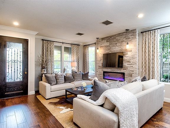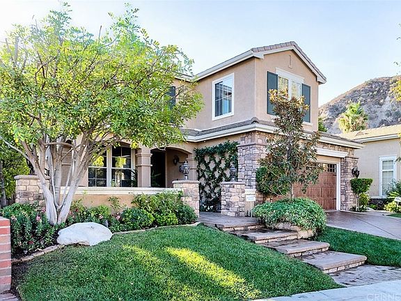 Absolutely GORGEOUS Remodeled Stevenson Ranch VIEW home on a flat Cul-de-Sac. Amazing custom interior and exterior from front to back! Upon entering through the wrought iron front door you will see the custom stone fireplace, hardwood floors, wrought iron cut outs, a temperature controlled wine cellar, 5" baseboards, crown molding, HUGE kitchen with an extended island and plenty of counter space, Kitchenaid stainless steel appliances and a Thermador stove-top, large laundry with cabinets and cut out cubby, Master bedroom with a balcony and view plus a custom master bath that has a stand alone tub, glass enclosed shower & built-in closet organizers, big loft plus three other bedrooms w/custom closets upstairs. Head outside through the double set of french doors to a spectacular backyard that includes a A framed covered patio with electric awning, stone fireplace, outdoor heaters, Built-in BBQ with a stone bar top, ice maker, trash bin, pendant lights and a beautiful SPOOL with a waterfall and gas fire-pots. Don't forget to check out the 3 car tandem garage with epoxy floors & custom built-in cabinets. This one of a kind home also features a whole house fan, Nest thermostats, tankless water heater, newer heating & A/C plus so much more! Too much to mention it all. Truly a must see home! Be sure to check out the Virtual Tour! Low HOA & freeway close!