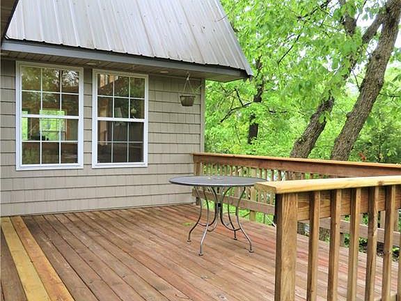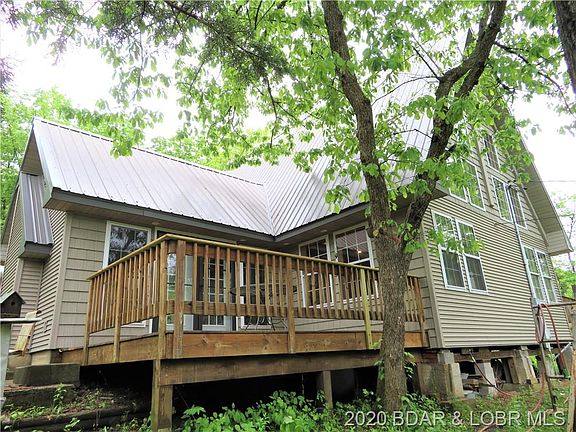 Magnificent multi-story home with a lake view in Rocky Mount, MO. Custom built throughout. Soaring ceilings filled with windows to let the light shine in. The living room & kitchen combo is ideal for entertaining. Walnut cabinets allow plenty of storage from floor to ceiling. Two large bedrooms and a laundry room large enough make more sleeping quarters. Two baths -one with jetted tub & the other a tile shower. Sunroom opens to one of 3 decks. There are built-ins, a gorgeous wooden spiral staircase, wood planked ceilings and a loft overlooking the lower level. Don't forget to check out the 38x27 3-car garage/shop with 9' doors. Upper level of garage has plenty of room for storage or make it into more living quarters. This beautiful home has so much to offer & is definitely a must see!