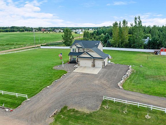 Situated on 6+ acres of picturesque countryside, this 5-bedroom, 4-bathroom home offers a rare blend of comfort, space, and endless possibilities—a place where everyday life feels grounded yet expansive. Step onto the covered front porch, wrapped in classic maintenance-free white fencing that encircles the entire property, and imagine soaking in your mornings, coffee in hand, overlooking your own private haven, chicken coop, or lush lawn on autopilot with in-ground irrigation.