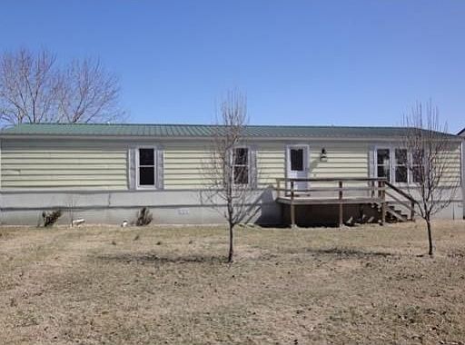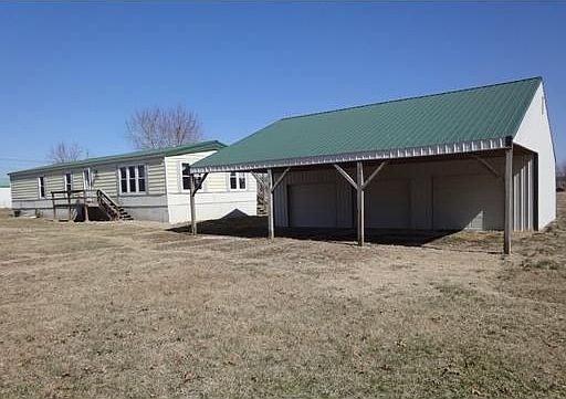 MOBILE HOME SETTING ON JUST OVER AN ACRE OF LAND. THE HOME NEEDS SOME CLEANING AND A LITTLE REPAIR. THE PROPERTY HAS A 3 CAR GARAGE/WORKSHOP, IS CLOSE TO TOWN AND THE PROPERTY IS FLAT AND USEABLE. THE HOME HAS A HUGE BACK DECK AND BIG BACK YARD.