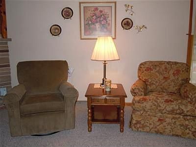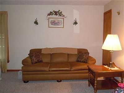 Nice ranch style home with convenient first floor living. Both bedrooms with hard wood floors. Living room with Fireplace (artificial logs). Newer vinyl siding installed in 2004, newer garage door - 2004, furnace and central air - 2000, and water softener - 2010. Basement is walk-out with great potential to finish.