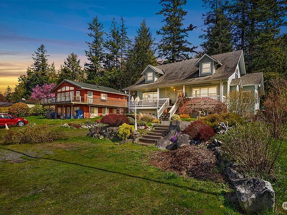 Lummi Island's coveted west side living at it's finest! Boasting 1804 sq ft on first 2 floors, with additional 732 sq ft partially finished basement. Offering primary suites on main and upper floor, and an open floor plan to capture the breathtaking views. Attached tandum 2 car garage and detached shop/garage behind. Thoughtfully landscaped by a master gardener, easy care, 4 season, drought-tolerant outdoor garden spaces, backing up to conservation land that will never be built on. Enjoy ever changing, inspiring sunsets over the Salish Sea and outer islands, from every room in the home, plus exclusive access to private Isle Aire Sunset Beach. Seize the opportunity to call this exceptional island retreat your home.