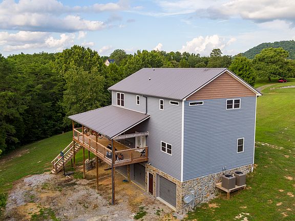 Sprawling estate on a private peninsula protruding into captivating Cherokee Lake. 5+ acres boasting an immense amount of lake frontage, fenced pastures, barn with water and a 4 bed/3bath custom home built just last year. Lake/mountain views from every window, floor to ceiling stone gas fireplace, whiskey oak custom cabinetry, tile flooring constructed in Egypt, impressive appliance package including washer, dryer, and separate built-in wine fridge. Recess lighting throughout this well-constructed home illuminates the thoughtful design- such as the expansive master bathroom's double rain head stone shower partnered with jetted bath that comfortably accommodates a length of 6'4 while bluetooth speakers help tune out the day. Walk-in closets with custom shelving, extra wide hallways, lofted areas for additional storage, plus a full basement that has a workshop room, safe room, storage room, and three car garage with 10ft tall ceiling. Outside a 50AMP hookup is ready for an RV, there's a storage room for water toys, and a built-in stone dog house with underground fencing in place. A space has been cleared for a dock and TVA has quoted $500 for permit. Live the high life on a low budget let's talk about peace of mind! Metal roof has a 50 year warranty. Windows warrantied for life (even if you break them)! Faucets, shower heads, anything that water comes out of - Delta has warranted (minus outside spicket). Spray cellular insulation throughout, cost-efficient hybrid water heater, and 10 year warranty on central heat and air. Seller is not required to carry flood insurance. No load bearing interior walls mean you have the freedom to reconfigure the design as your needs in a home change. Survey of property and septic permit on hand. Seller to fund $5,000 at closing for buyer preference landscaping.