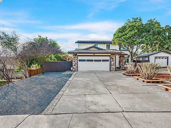 Rare Opportunity to own this beautifully updated 4 bedroom, 2.5 bath home featuring a detached 320 sqft garage/workshop on 10,000+ sf lot with room for ADU & pool! Desirable court location, hill views, easy access to freeway, shopping & parks! The home features a new HVAC system & Honeywell Home thermostat*fresh paint inside & out*new luxury vinyl*new carpet*updated bath vanities/fixtures & lighting*copper plumbing*newer water heater*wood cabinets/sliding shelves*new range/stove and a pass thru window perfect for enjoying dinner or entertaining on the covered patio. Expansive landscaped low maintenance yards include gated side yard access & lots of room for parking!