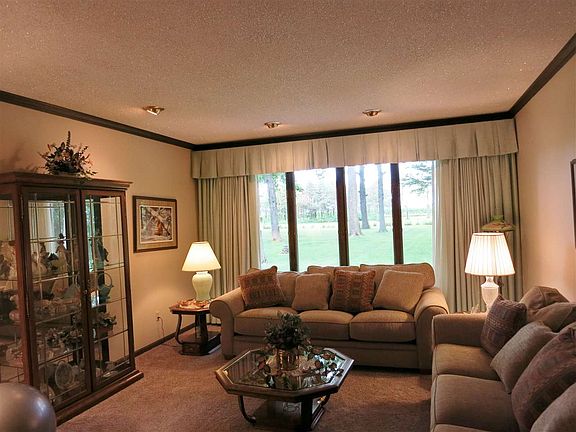 Sprawling ranch with/a basement situated on 10 private acres. Abundance of space both inside and out for comfortable everyday living and entertaining. Open concept living and dining rooms. Open concept kitchen, informal dining and family room with fireplace. Kitchen displays Zinn cabinets, range plus a 2nd built-in oven, breakfast bar and adjacent breakfast nook with a built in desk. Kitchen appliances are included. 4 bedrooms plus a den/office. Master bedroom bath offers 2 vanities with marble countertops and a walk-in marble shower. Laundry with utility sink conveniently located on the main level. 17x12 sunroom. 8 panel doors throughout. Abundance of storage space including a 14x8 main floor storage room. Home is electric with the exception of the sunroom which is propane. There is also a transfer switch for a portable generator. Washer, dryer and lawn ornaments are negotiable. The yard is partially fenced housing a shed with electric. A huge bonus is the 60x44 pole barn with 2 horse stalls, workbench, wood heater, 2 overhead doors, 2 sliding doors and a service door. 1 Touch Security System in both the house and pole barn. A few newer(within last 3 yrs unless noted) items listed but not limited to: interior paint, carpet, water softener, water heater, replaced existing geothermal heat & air system with new water furnace system, some newer windows, garage door operators. Septic pumped in 2015. 30 year dimensional shingles- 9 years old .