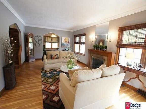 Rich in elegance, this brick Tudor has classic details like superb wood floors, crown moldings, 9' ceilings & a brick fireplace! Entertain in the spacious dining room, or relax in the sunroom. The kitchen has dual ovens, lots of cabinets & pantry. 2nd level has 4 light filled bedrooms. Lower level with family room. Newer Marvin windows on 2nd level and in kitchen. New heat pump 2009. Extra storage in attic and lowe level. Gorgeous fenced yard with patio and sun shade. Lush landscaping. A Must See! Neighborhood Description Popular location in the heart of midtown Omaha! Just moments to the Benson Business District, which is home to unique eateries, nightclubs and shops. Easy commute to the Nebraska Medical Center, downtwon Omaha, Midtown Crossing and Aksarben Village.