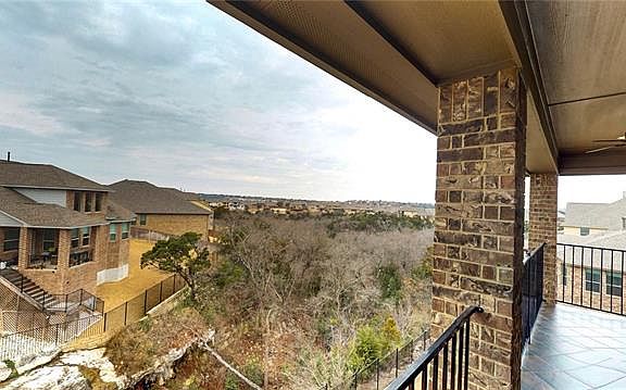 You will enjoy the views of the canyon land from your the covered patio or the balcony deck overlooking a wet weather waterfall directly behind this home. Amazing open-floor plan designed as a one story w/a bedroom/game room upstairs. Meticulous care has been taken on all aspects of this home & it shows! The custom Alder wood cabinets and Travertine back splash enhance this well-appointed kitchen with its large island that is great for entertaining. Classy crown moldings and plantation shutters impress.